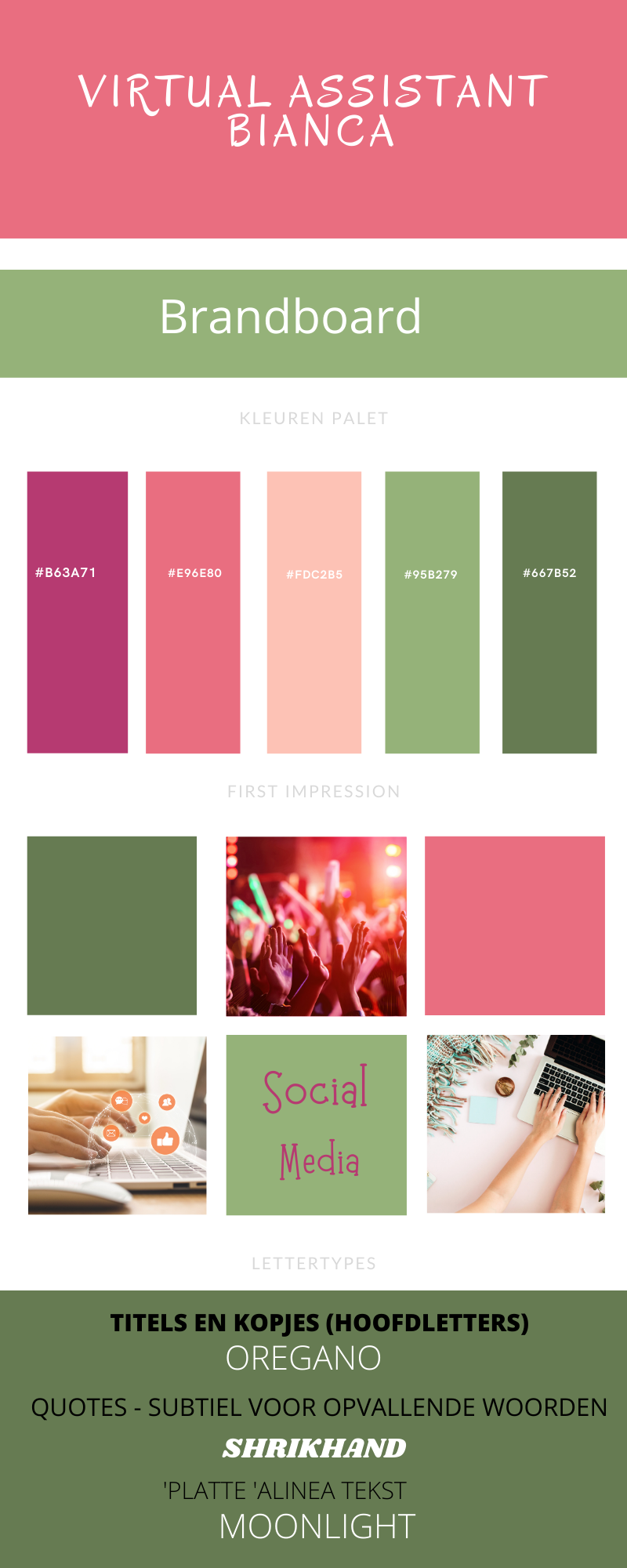 Ik ben vorig jaar als Virtueel Assistent gestart en merk dat ik branding & design en social media ondersteuning het allerleukste vind om te doen maar dat ik echt nog niet voldoende weet om dit ook echt naar een hoger niveau te tillen en vandaar de BED school! Ik hoop na deze cursus ondernemers te kunnen ondersteunen met branding en design.
