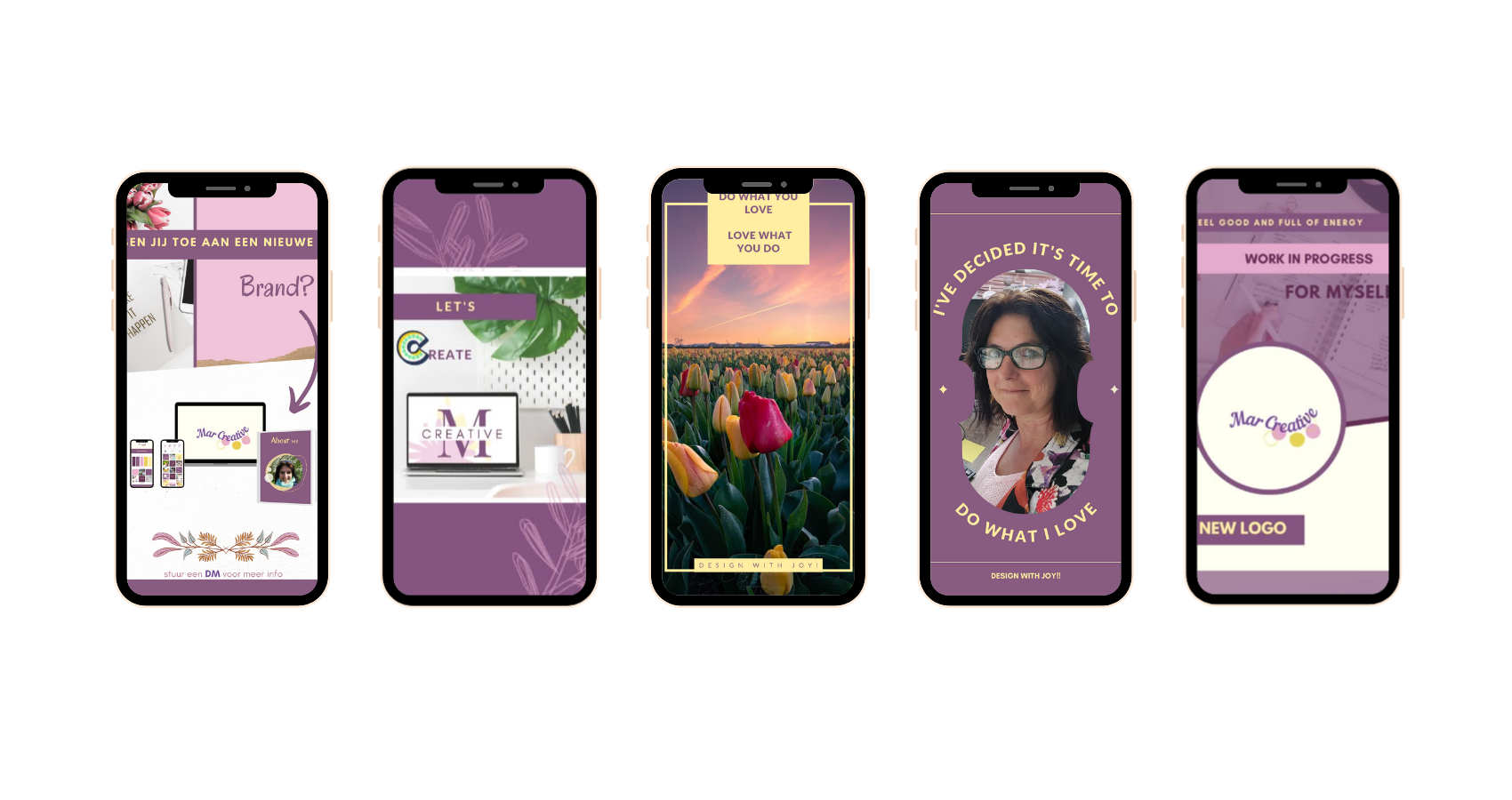 Ik woon en werk in het gezellige Alkmaar samen met Rinco. Ik heb jarenlang met plezier als juridisch secretaresse gewerkt, maar zou het fantastisch vinden wanneer ik nu mijn creatieve kant meer zou kunnen ontwikkelen. Bovendien zou ik mijn baan willen opzeggen om fulltime zelfstandig te ondernemen. Mijn droom is om locatie onafhankelijk te kunnen werken, zodat ik met mijn camper op reis kan gaan en reizen en werken kan combineren. Branding & Design lijkt prima in dat plaatje te passen. Ik heb er zin in!