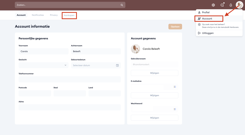 - Vóór 2025 verlengd?: Log in op www.carolabeleeft.nl, navigeer naar Jouw accountgegevens > Mijn abonnementen > Abonnement beëindigen.- Vanaf 2025 verlengd: Ga naar je account in de Online Huddle omgeving > Klik op je profielfoto rondje rechtsboven > account > aankopen. Je komt dan in jouw klantenportaal.