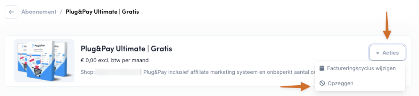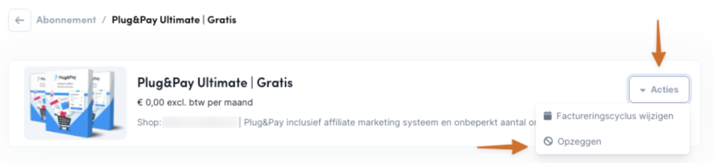 Klik daar op het abonnement dat je wilt stoppen/wijzigen > klik rechts op acties > opzeggen.